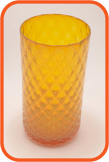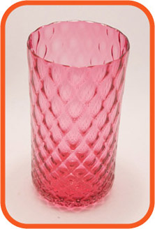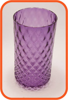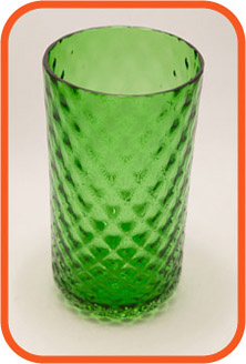 These gem colored transparent glasses will become the crown jewel of your cabinet. Each 12oz glass is hand molded with a strong surface texture. This patterning gives them an unmatched grip in your hand. The facets also catch and reflect the light like a lens. These are perfect for milk, water with a meal, or cocktails.